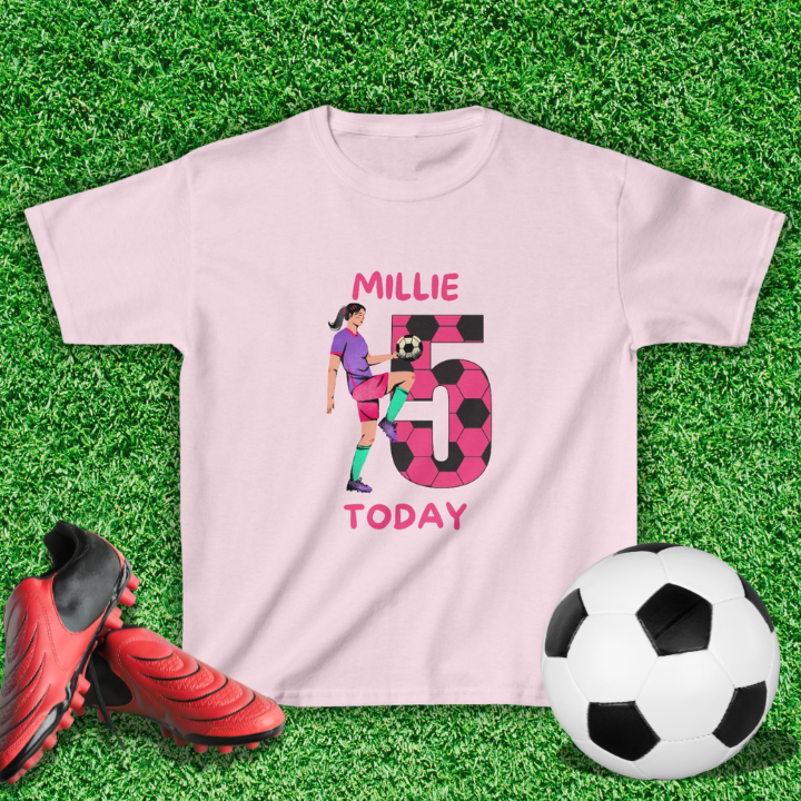 Score big on their special day with our Girls Football Birthday T-Shirt! Designed for young football stars, this sporty tee can be customised with your child's name and age, making it the perfect outfit for a birthday celebration. Featuring a fun and vibrant football design, this t-shirt is both ...